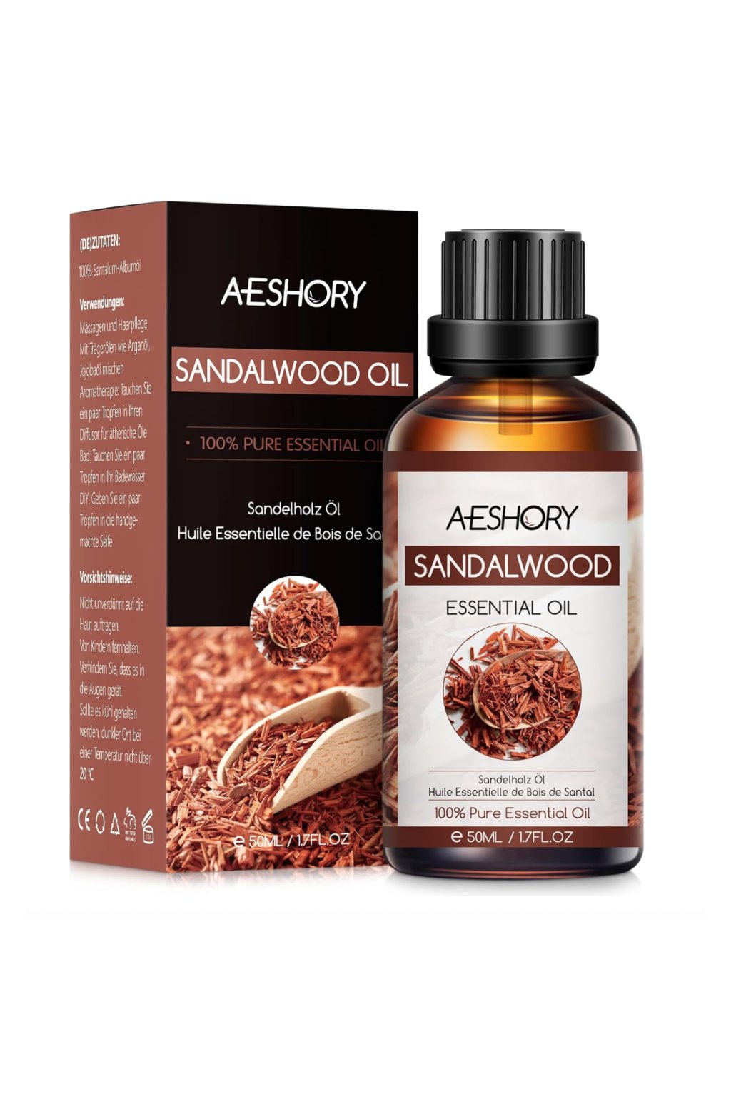 Tento produkt, esenciální olej Aeshory Sandalwood, je vysoce kvalitní esenciální olej vyrobený ze 100% přírodního santalového dřeva.