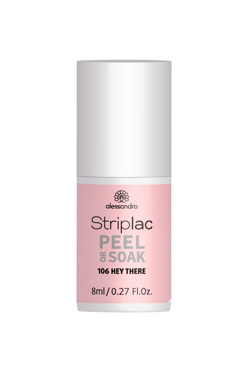 Alessandro Striplac Peel or Soak Nail Polish – odstín 106 Hey There, 8 ml je profesionální UV/LED lak na nehty s technologií Peel or Soak, která nabízí gelově vypadající výdrž až několik týdnů a zároveň snadné odstranění bez poškození přírodních nehtů.