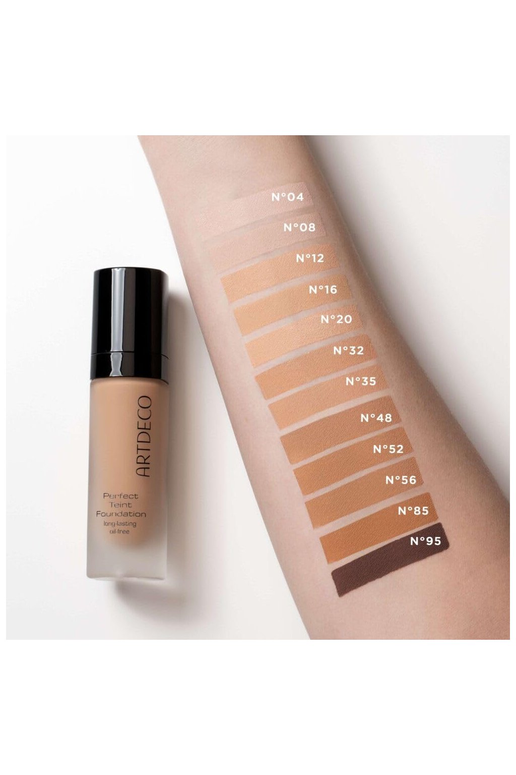 ARTDECO Perfect Teint Foundation make-up 20 ml je lehký, perfektně krycí make-up, který sjednocuje tón pleti a dodává jí přirozený, sametově matný vzhled. Díky své tekuté textuře se snadno nanáší, dokonale splyne s pletí a poskytuje dlouhotrvající efekt bez maskového dojmu. Obsahuje hydratační složky, které zanechávají pokožku jemnou a pružnou, zatímco speciální pigmenty rozptylují světlo a opticky vyhlazují nedokonalosti. Ideální pro každodenní použití, vhodný pro všechny typy pleti, včetně citlivé. Dermatologicky testováno.