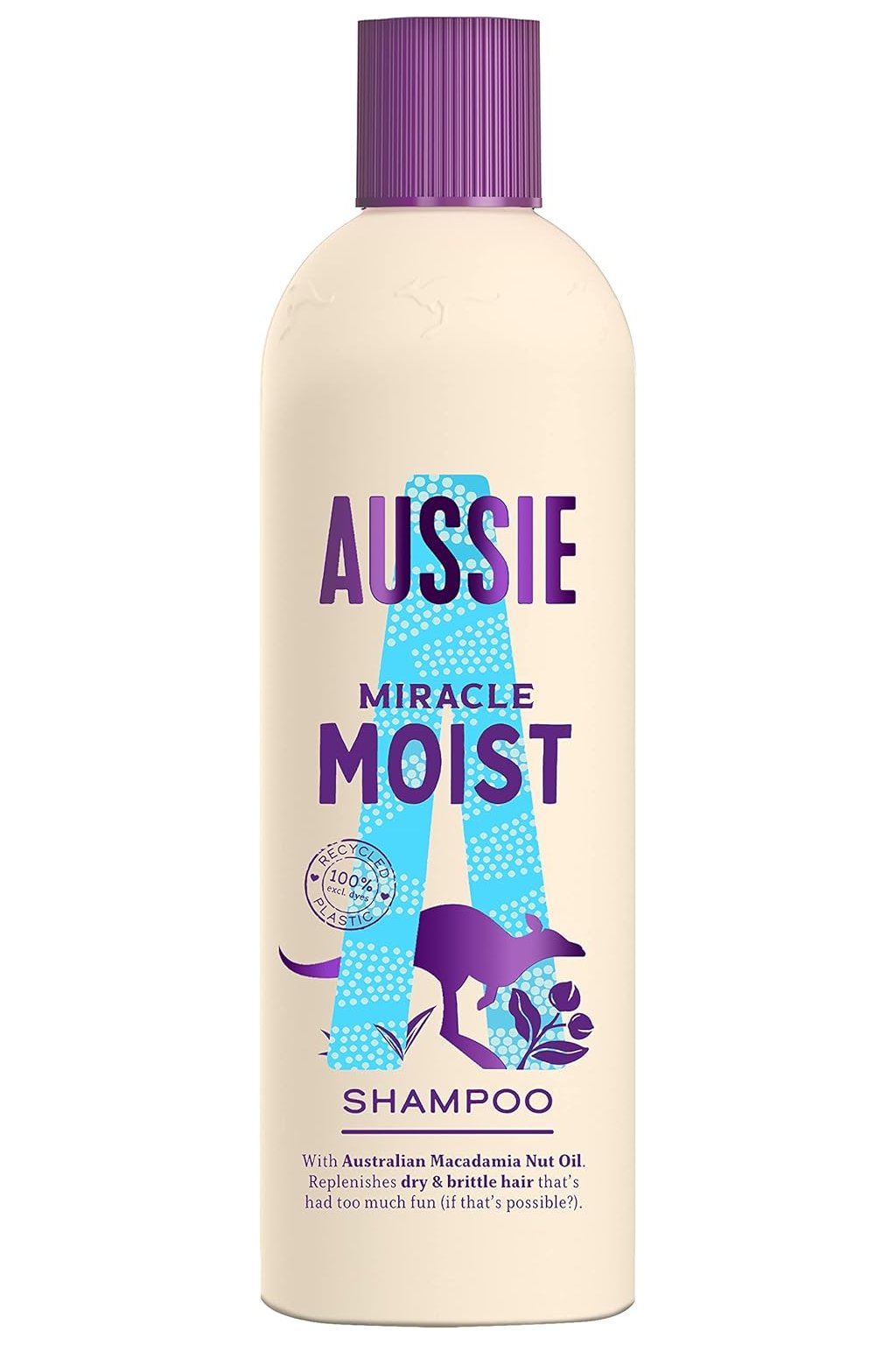 Aussie Miracle Moist Shampoo, 300 ml je hydratační šampon navržený pro suché a dehydrované vlasy, který jim poskytuje hloubkovou výživu, hebkost a vláčnost již při prvním umytí.