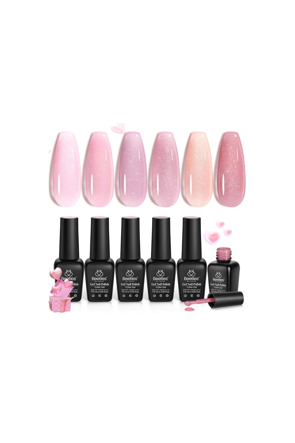 - 6 třpytivých odstínů: Kombinace růžových glitrových tónů pro kreativní manikúru.