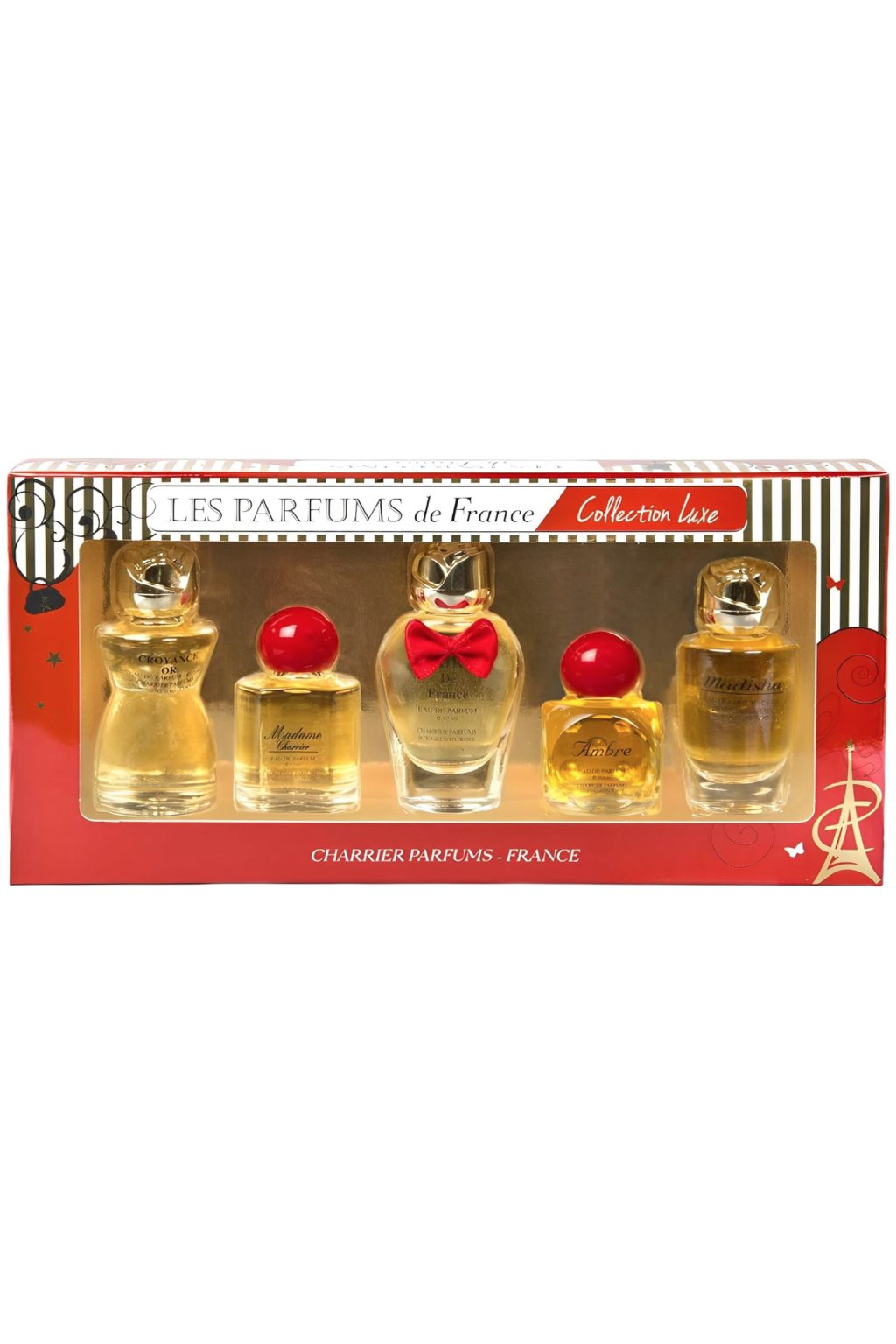 Objevte elegantní kolekci pěti miniatur Eau de Parfum od tradiční francouzské značky Charrier Parfums. Každý flakónek ukrývá jinou vůni, která vás přenese do světa sofistikovaných esencí – od květinových tónů až po hřejivé dřevité akordy.
