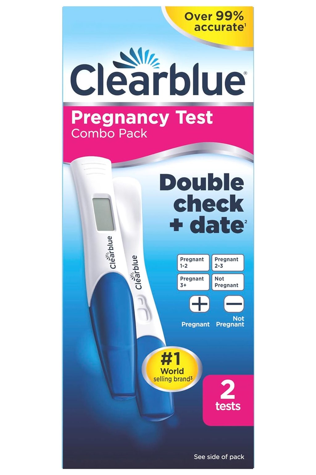 Obsahuje jeden (1) digitální těhotenský test Clearblue s indikátorem týdnů a jeden (1) těhotenský test Clearblue Rapid Detection; oba domácí těhotenské testy jsou více než 99% přesné