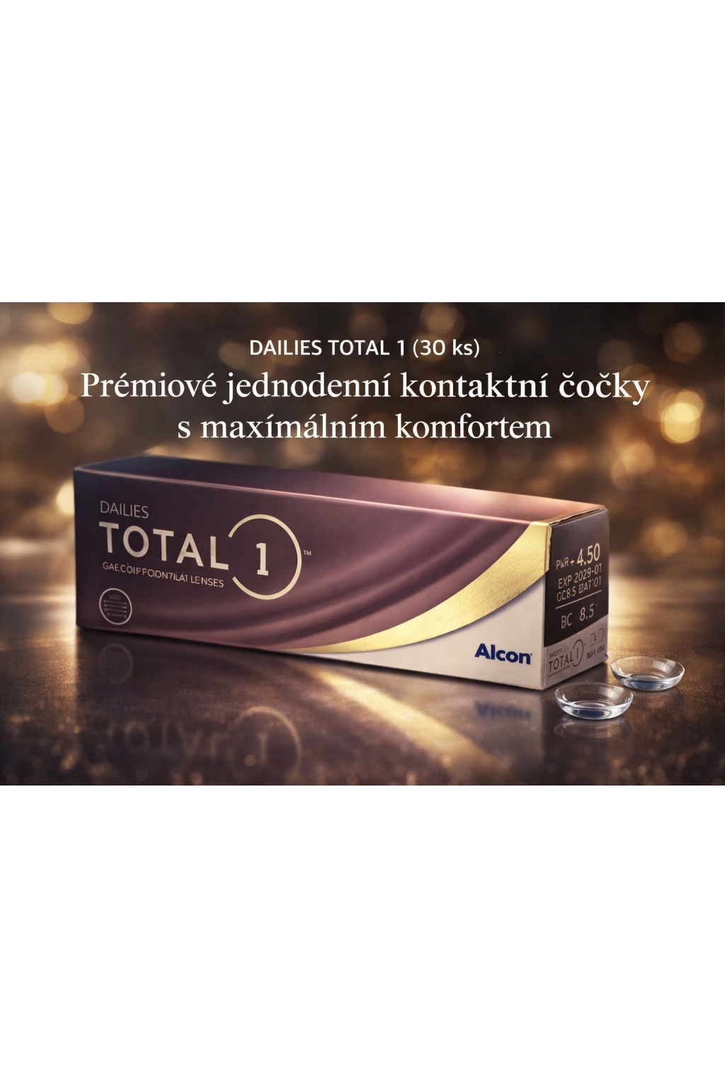 Kontaktní čočky Dailies Total 1 od Alcon představují špičku v kategorii jednodenních silikon-hydrogelových čoček. Jsou navrženy pro maximální komfort nošení po celý den a poskytují výjimečnou hydrataci i pro citlivé oči.