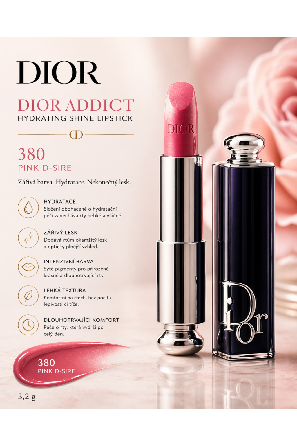 Dior Addict Hydrating Shine Lipstick – odstín 380 Pink D-Sire 3,2g