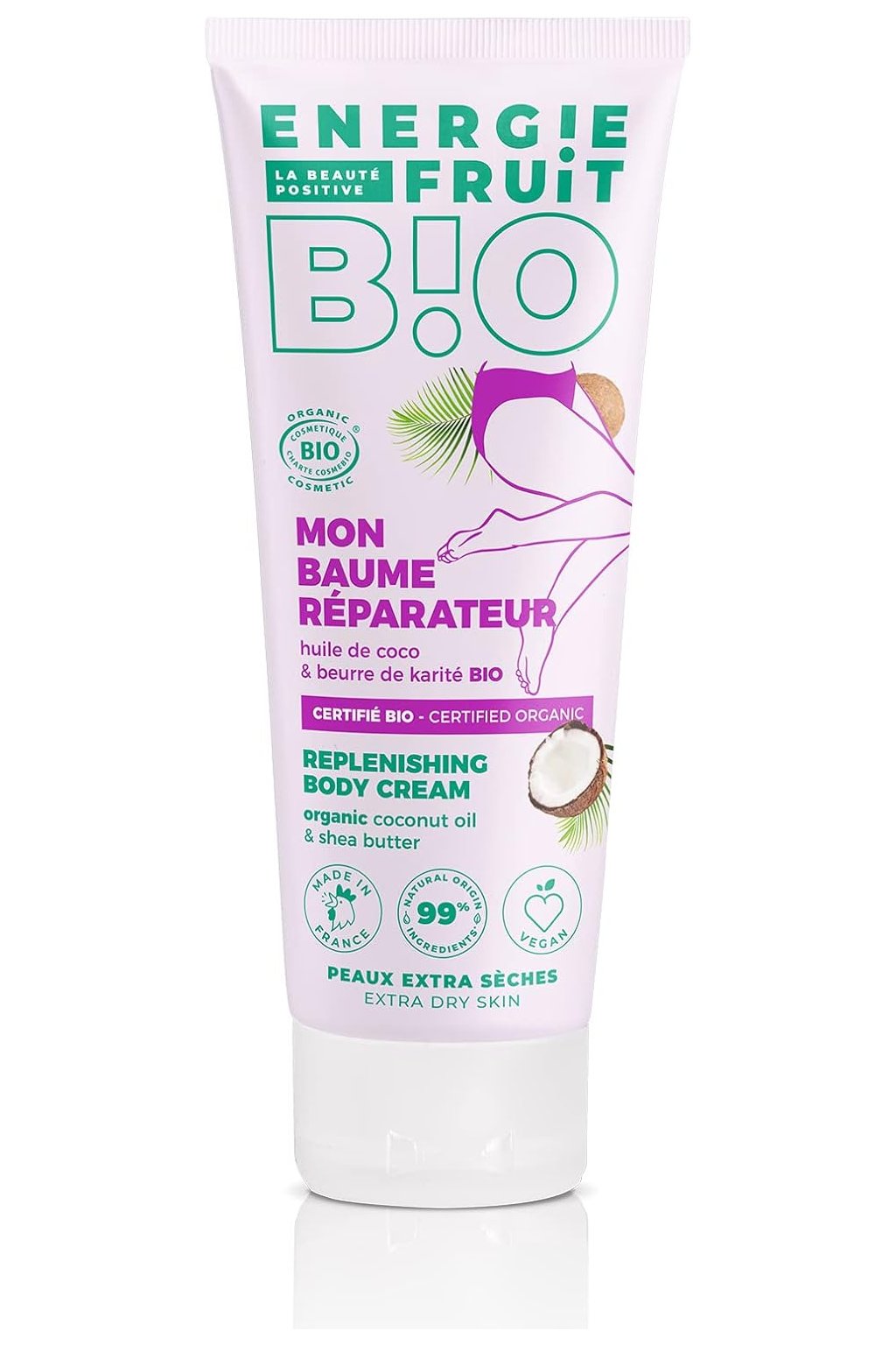ENERGIE FRUIT Regenerační tělový balzám Kokosový olej & Bambucké máslo 200 ml je bohatý hydratační a výživný balzám na tělo, který intenzivně zklidňuje suchou pokožku, vyživuje ji a obnovuje její hebkost. Tento balzám kombinuje výtažky z kokosového oleje a bambuckého másla, které pokožku hloubkově vyživují a posilují její přirozenou ochrannou bariéru. Příjemná textura se snadno roztírá a rychle se vstřebává, nezanechává mastný film, ale přesto zanechává pokožku jemnou, hladkou a pružnou.