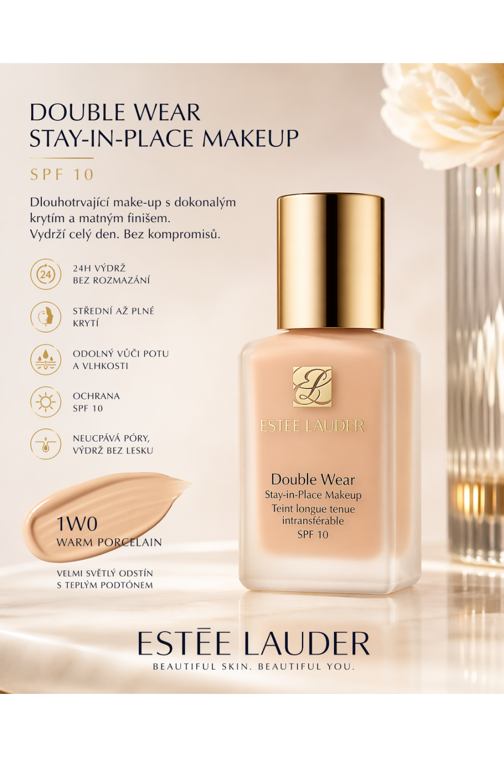 Estée Lauder Double Wear Stay-in-Place Makeup SPF 10 – odstín 1W0 Warm Porcelain 30ml