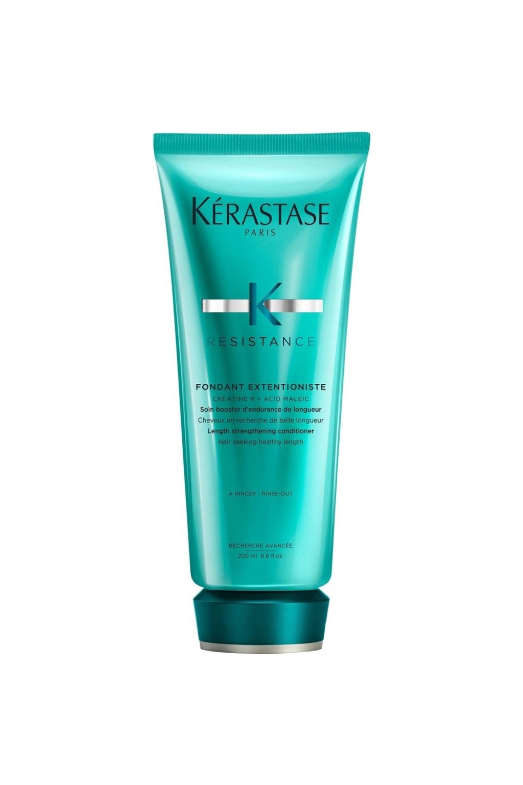 Kérastase Fondant Extentioniste je vysoce účinný kondicionér určený pro oslabené vlasy, které chtějí růst. Díky jedinečnému komplexu kreatinu R a kyseliny maleinové okamžitě posiluje vnitřní strukturu vlasového vlákna, uzavírá kutikulu a chrání vlasy po celé jejich délce.