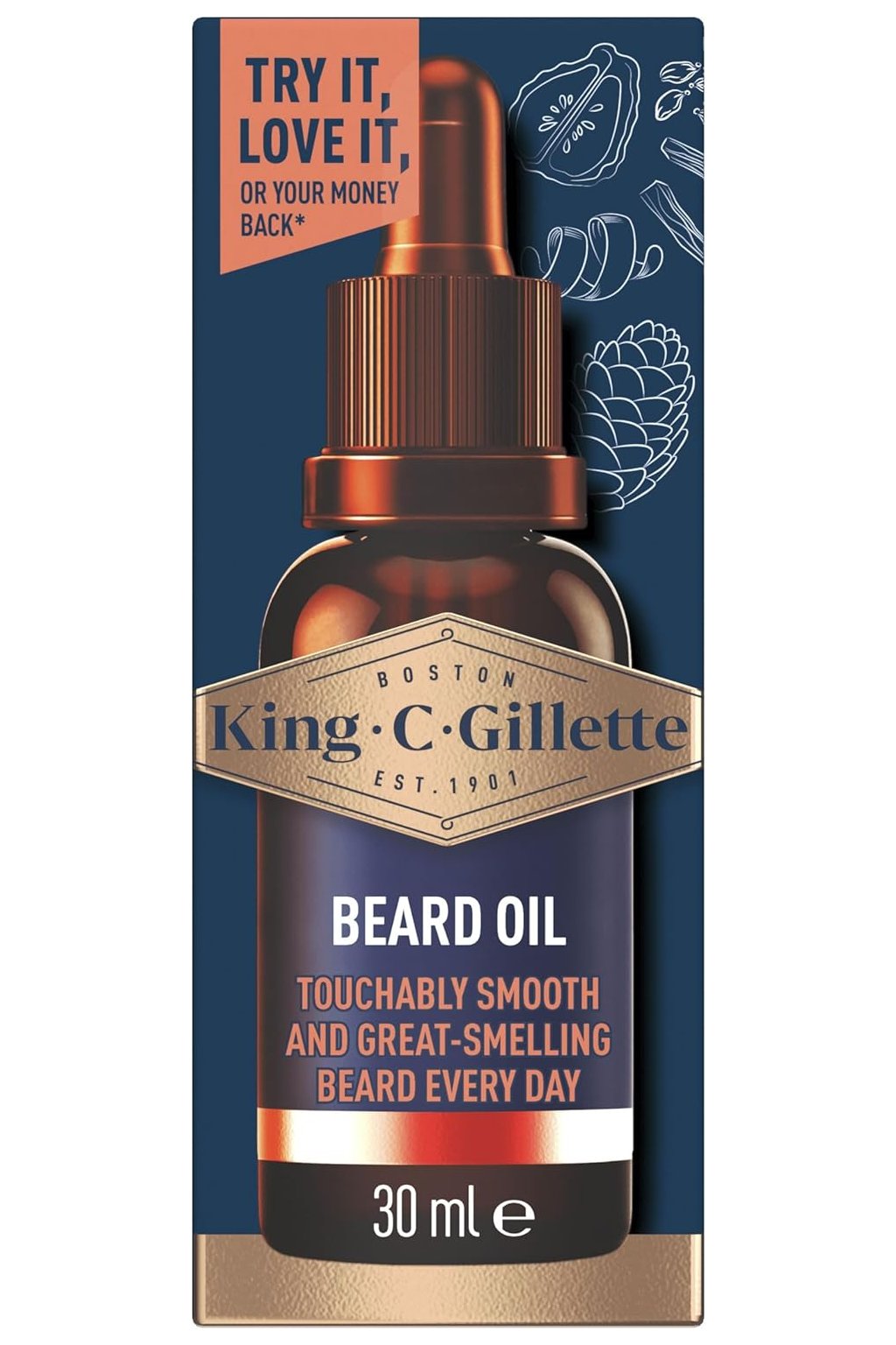 King C. Gillette Beard Oil for Men, 30 ml je vyživující a hydratační olej, který jemně zjemňuje a vyhlazuje vousy, usnadňuje jejich úpravu a dodává jim zdravý lesk. Olej obsahuje kombinaci rostlinných olejů – arganového, jojobového, avokádového, makadamiového a mandlového – které podporují hydrataci pokožky pod vousy, snižují suchost a zlepšují pružnost vlasů. Produkt je vhodný pro každodenní použití, snadno se vmasíruje do vousů a pokožky, nezanechává mastný film a zanechává jemnou, mužnou vůni. Praktické balení o objemu 30 ml je ideální na cesty i pro domácí použití, vhodné pro všechny typy vousů.