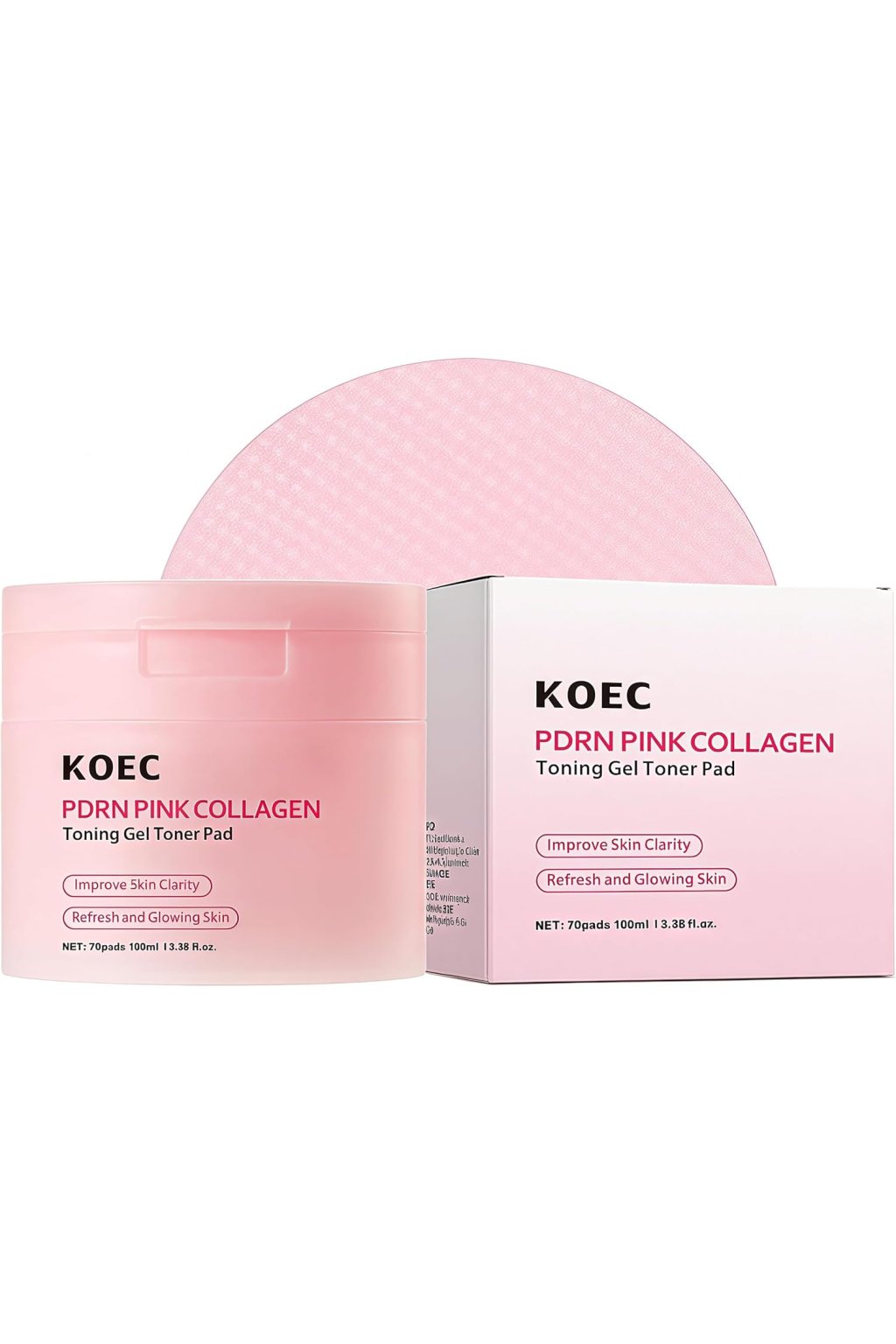 KOEC PDRN Pink Collagen Gel Pad 70 ks (také známý jako PDRN & Collagen Gel Toning Pad) je pleťový tonik ve formě gelových polštářků určený pro každodenní péči v rámci vaší rutiny čištění pleti. Každý tampon je napuštěn kolagenem a PDRN (polydeoxyribonukleotid z lososové DNA), které pomáhají podporovat přirozenou obnovu pokožky, zlepšují její pružnost a zanechávají ji svěží, hladkou a zářivou. Gelová textura se snadno přizpůsobí konturám obličeje, poskytuje jemný chladivý a zklidňující účinek a je vhodná pro všechny typy pleti, včetně citlivé. Používejte po čištění – přiložte tampón na obličej na několik minut, aby se aktivní složky vstřebaly. Balení 70 kusů umožňuje dlouhodobé používání jako součást každodenní péče o pleť.
