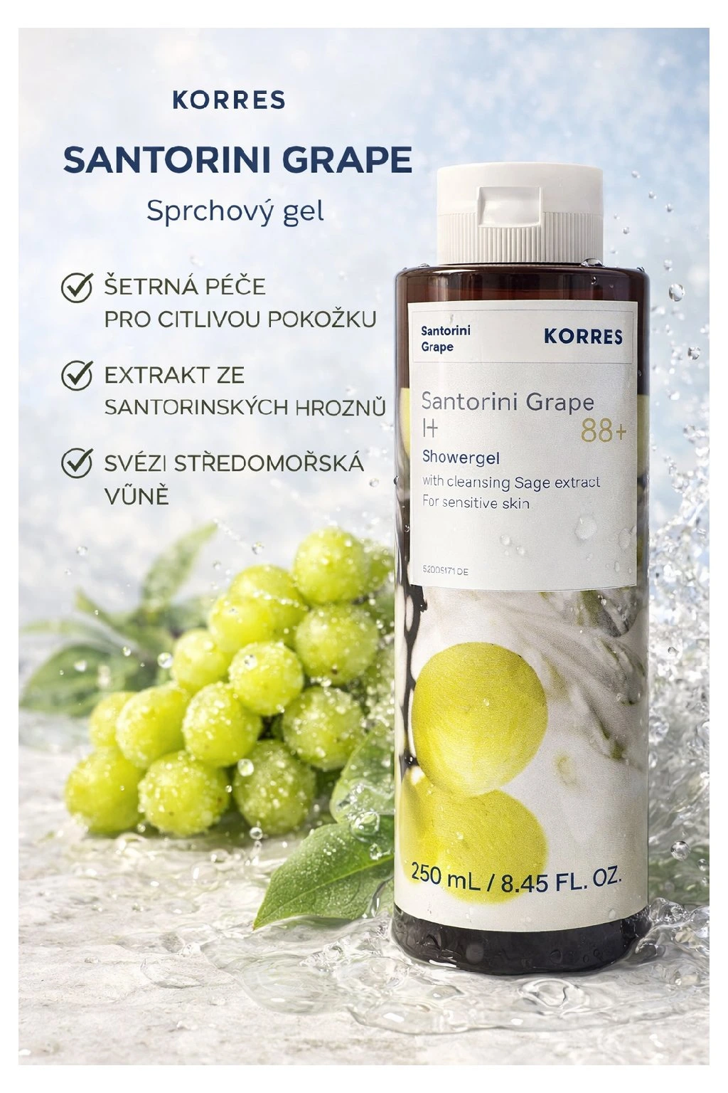 Dopřejte své pokožce jedinečný zážitek s KORRES Santorini Grape sprchovým gelem, inspirovaným sluncem zalitými vinicemi řeckého ostrova Santorini.
