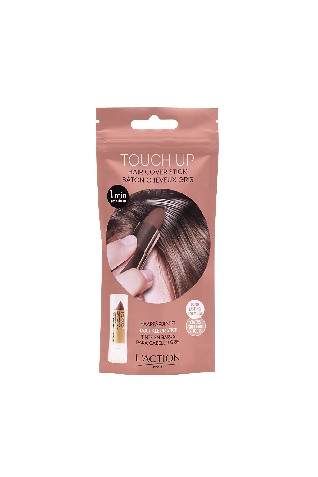 L’Action Paris Hair Concealer Stick, Dark Brown 4 g je praktický produkt určený k okamžitému zakrytí šedivých nebo obarvených odrostů mezi barvením vlasů. Tyčinka se snadno nanáší přímo na vlasové kořínky a zajišťuje přirozený vzhled, aniž by vlasy slepovala nebo zanechávala viditelné stopy. Je ideální pro rychlé úpravy doma nebo na cestách, když potřebujete okamžitě opravit barvu. Barvu lze jemně rozčesat a přizpůsobit tak, aby ladila s vaším odstínem vlasů. Produkt se po umytí šamponem zcela vymyje, takže nemá vliv na dlouhodobou péči ani trvalou barvu vlasů. Korekční tyčinka L'Action Paris je vhodná pro všechny typy vlasů a poskytuje diskrétní a snadnou alternativu pro rychlé zakrytí šedivých vlasů.