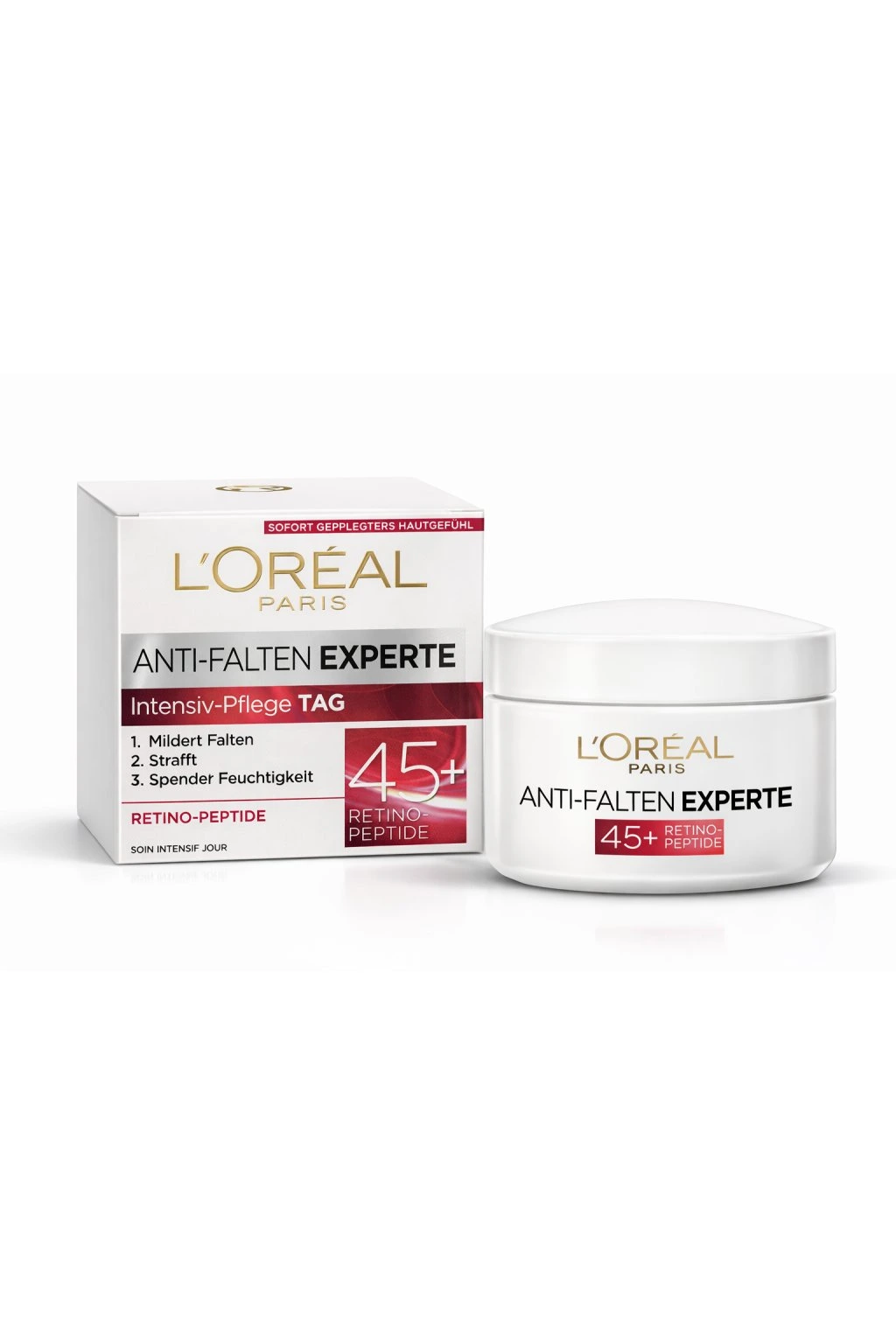 Dopřejte své pleti cílenou péči s denním krémem L’Oréal Paris Anti-Falten Experte 45+, který je speciálně vyvinut pro potřeby zralé pleti. Díky obsahu aktivních látek, včetně retino-peptidů, pomáhá redukovat viditelné vrásky, zpevňuje pleť a poskytuje intenzivní hydrataci po celý den.