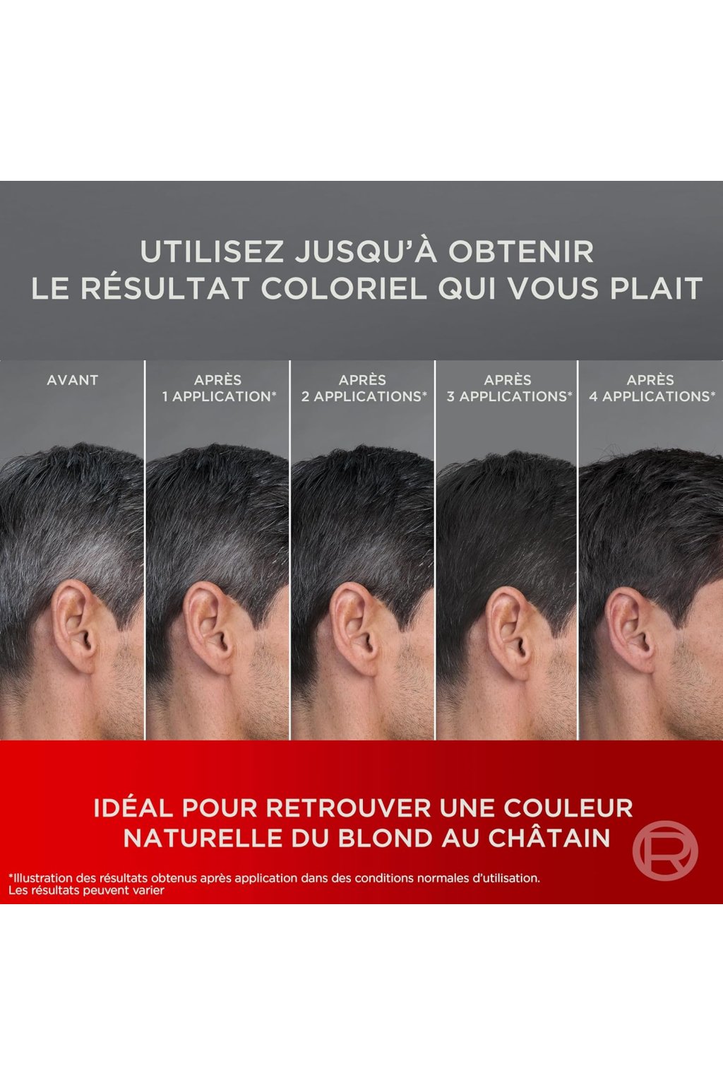 Repigmentační gel pro muže s rovnoměrně rozprostřenými bílými nebo šedivými vlasy. Ideální pro diskrétní obnovení přirozené barvy od tmavě blond po hnědou.