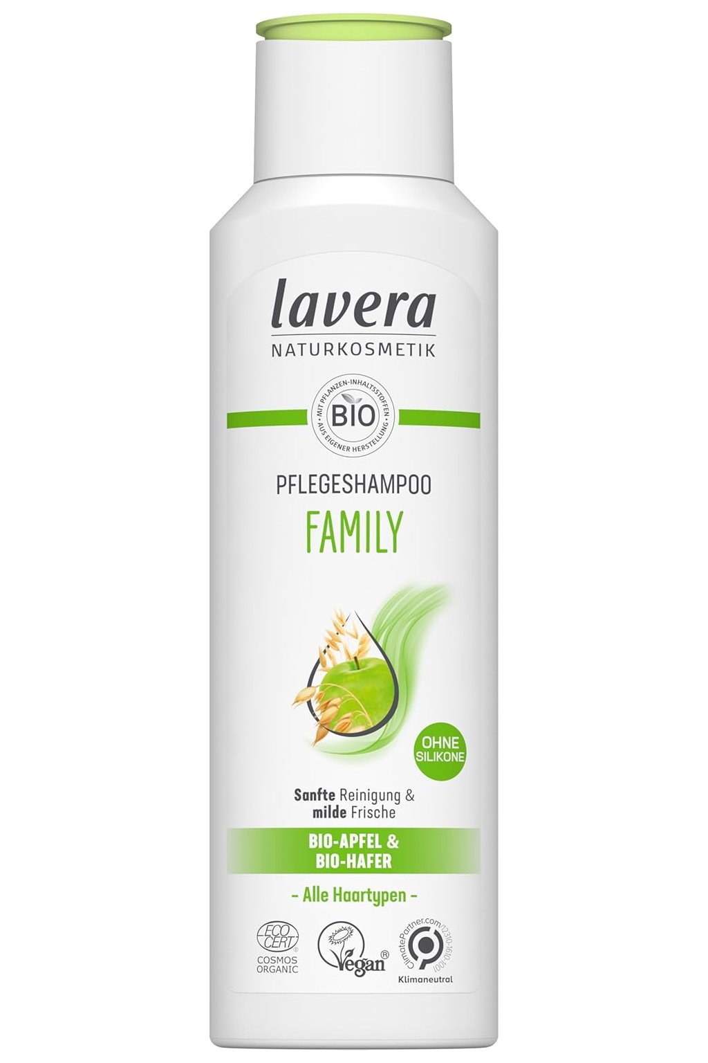 lavera Šampon pro celou rodinu 250 ml je jemný šampon s přírodním složením určený pro všechny typy vlasů. Jemně čistí bez drsných chemikálií a je vhodný jak pro citlivou, tak pro normální pokožku hlavy. Tento rodinný šampon kombinuje výživné rostlinné výtažky, které zanechávají vlasy po každém umytí hebké, snadno rozčesatelné a přirozeně lesklé. Díky svému jemnému složení je ideální pro každodenní použití u dětí i dospělých, bez podráždění nebo vysušení. Má vyrovnávací účinek, podporuje přirozenou rovnováhu pokožky a zanechává příjemnou, svěží vůni.