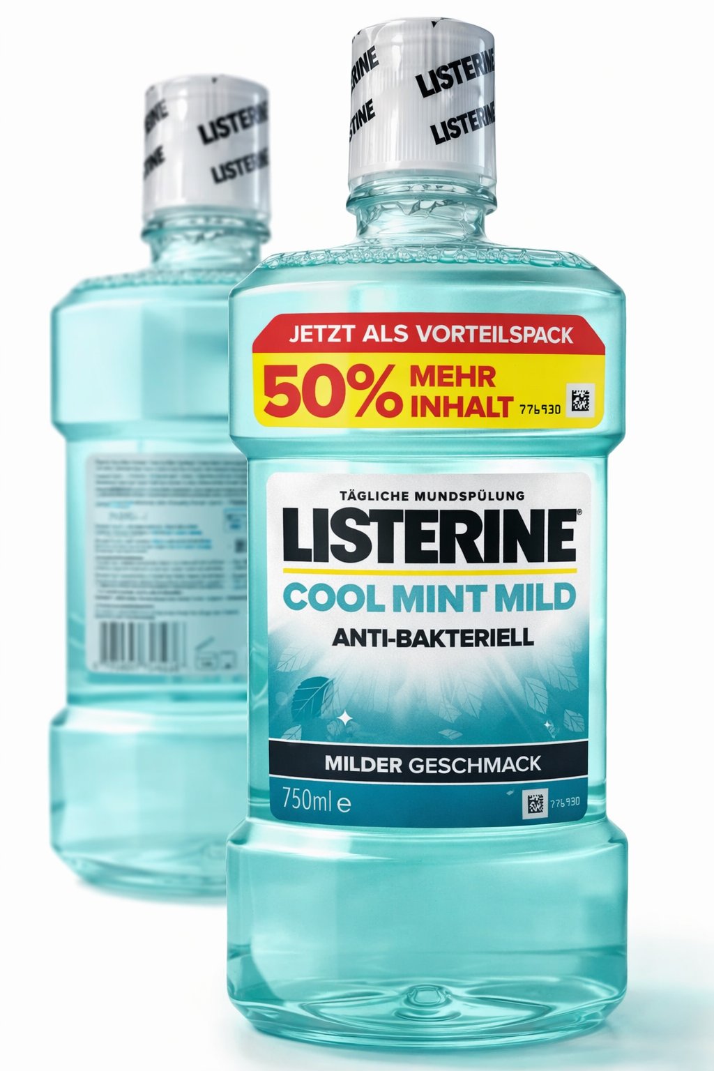 Ústní voda Listerine Cool Mint Mild je ideální doplněk každodenní dentální hygieny pro svěží dech, čisté zuby a zdravé dásně. 🦷🌿