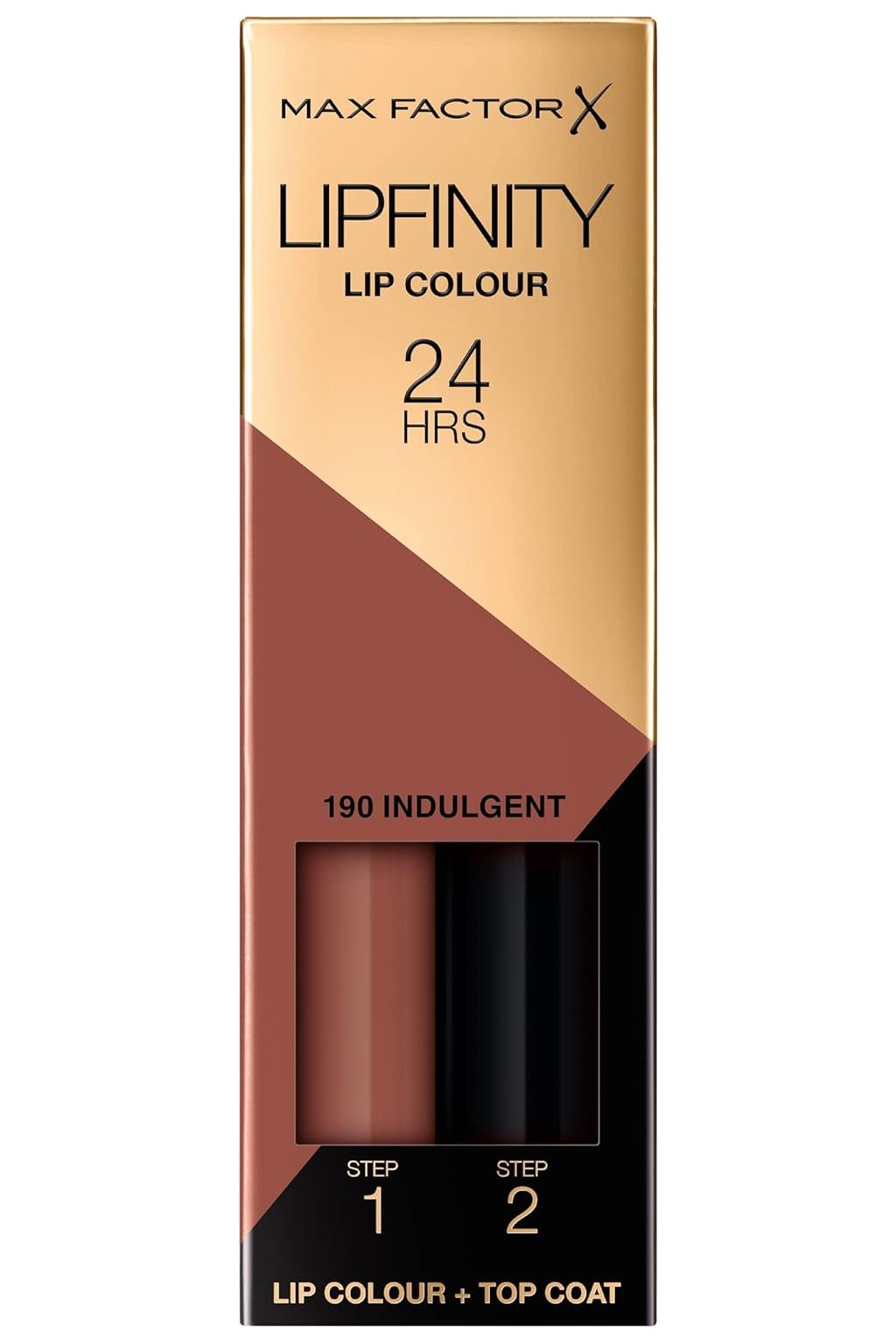 Max Factor Lipfinity Long-Lasting Two Step Lipstick – odstín 190 Indulgent, 4,2 g je dvojfázová tekutá rtěnka, která poskytuje dlouhotrvající barvu až 24 hodin kombinací intenzivního pigmentu a ochranného lesku. Tento oblíbený systém obsahuje barvu (step 1), která se rychle a rovnoměrně přichytí na vaše rty, a lesk (step 2), který „uzamkne“ barvu a dodá rtům komfortní pocit, hydrataci a nádherný lesk bez pocitu vysušení.