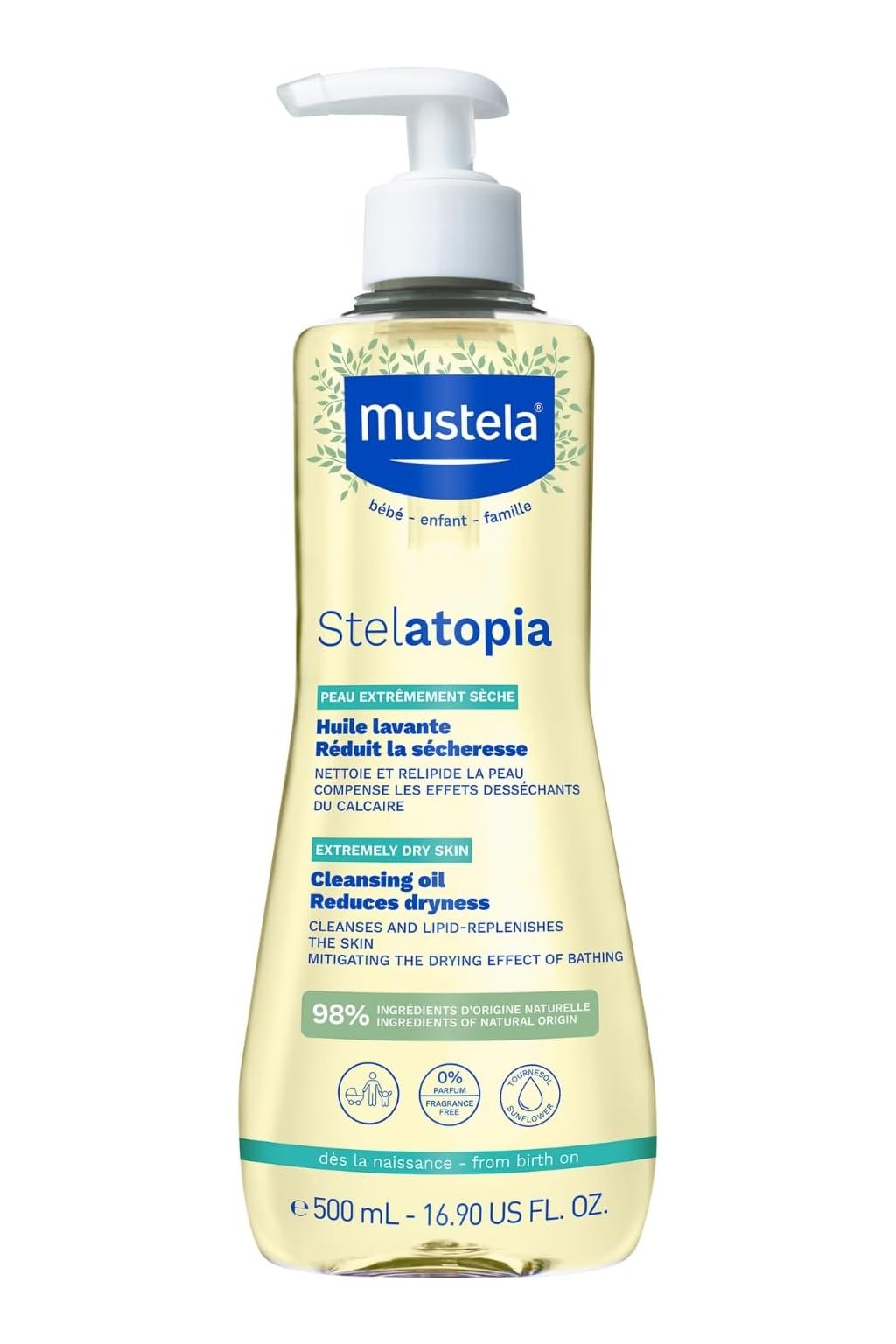 Mustela Stelatopia čisticí olej 500 ml je jemný čisticí produkt určený pro suchou a citlivou pokožku, zejména u kojenců a dětí. Olej účinně odstraňuje nečistoty a make-up, aniž by narušil přirozenou ochrannou bariéru pokožky. Je obohacený o rostlinné lipidy a avokádový perseose, které zklidňují podráždění, zanechávají pokožku hebkou, hydratovanou a chráněnou před vysoušením. Díky své jemné textuře se snadno nanáší a rychle vstřebává, což zajišťuje komfort při každodenní péči. Olej podporuje regeneraci a zdravý vzhled pokožky již od prvního použití.