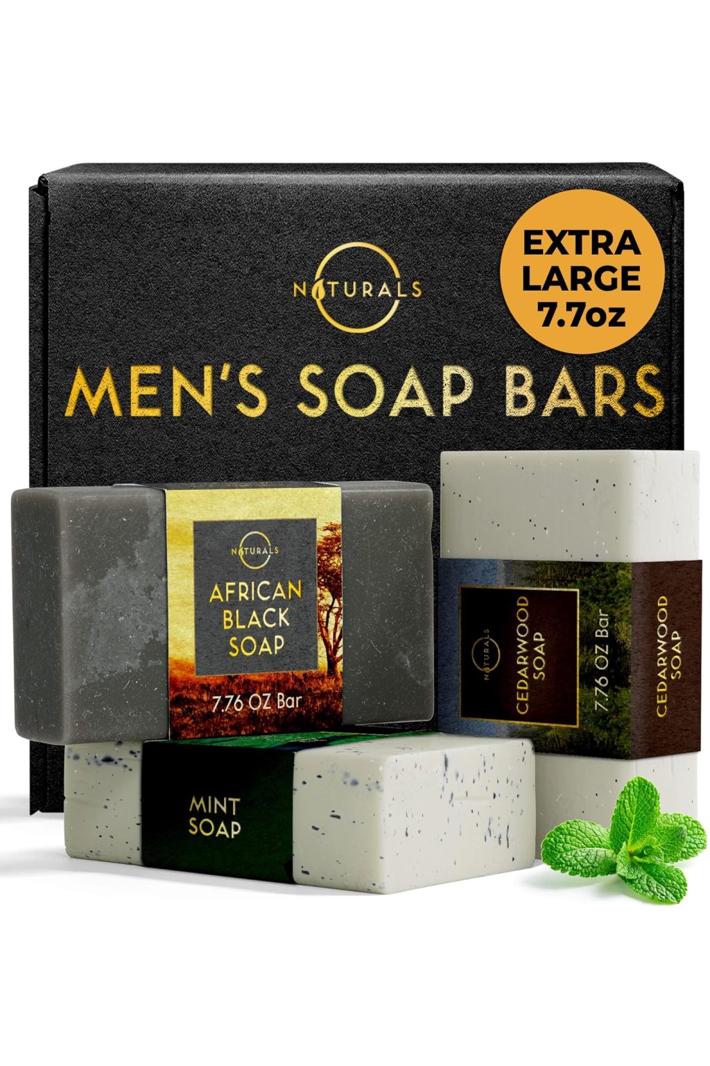 NATURALS Pevné mýdlo pro muže, balení po 3 kusech, Africké černé mýdlo, cedrové dřevo, máta peprná