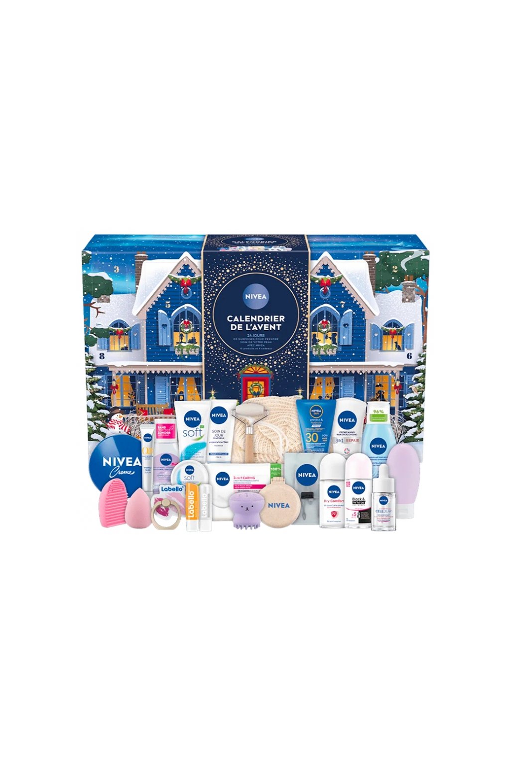 Adventní kalendář Nivea 2025 nabízí 24 překvapení v podobě produktů pro péči o pleť a doplňků pro obličej, tělo a rty. S 15 produkty a 9 doplňky poskytuje každodenní zážitek z krásy.