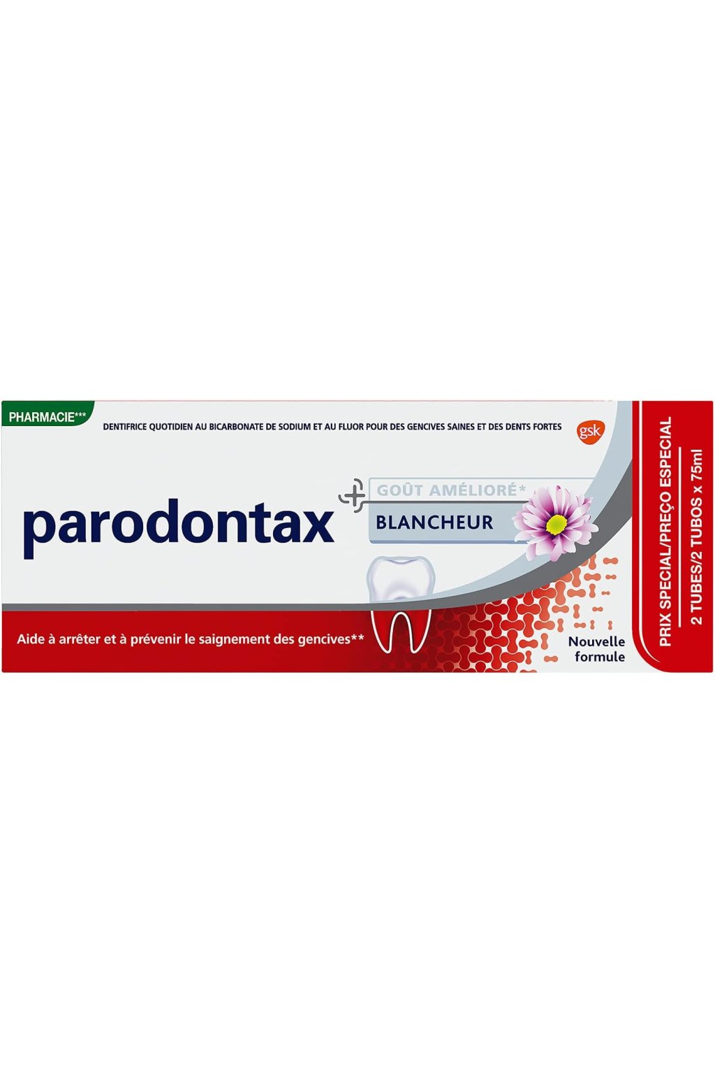 Jemná čistiaca receptúra s 45 % sódou bikarbónou neutralizuje kyselé prostredie a odstraňuje povlak, zatiaľ čo fluorid (1 400 ppm) posilňuje zubnú sklovinu. Šesť bylinných extraktov – ratanhia, echinacea, harmanček, myrha, šalvia a mäta – účinne upokojuje a tonizuje ďasná. Každodenné používanie zabezpečuje hladké, čisté zuby a zmierňuje krvácanie. Praktické balenie dvoch tub je ideálne pre celú rodinu – maximum účinku pre citlivé ďasná v praktickom prevedení.