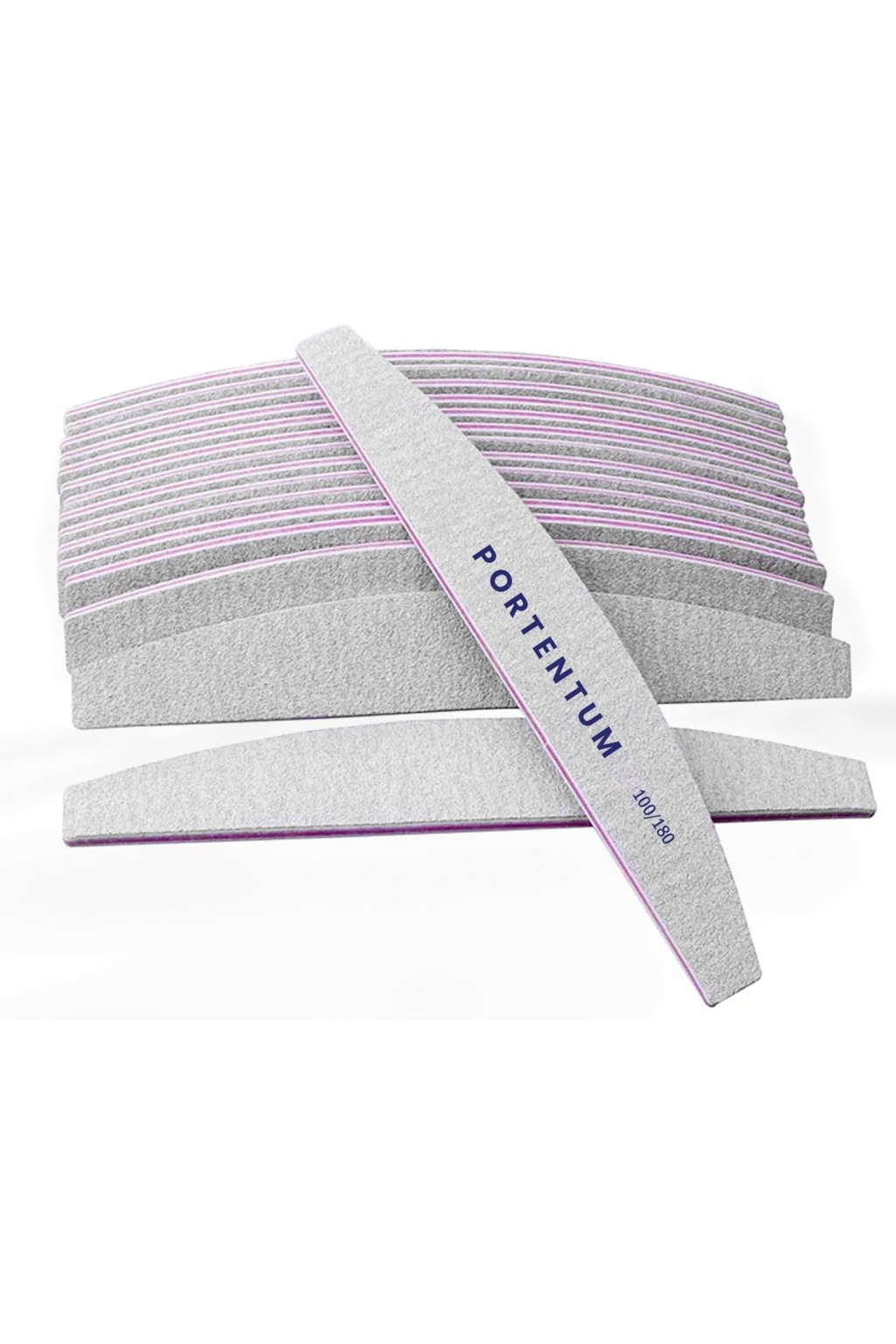 PORTENTUM Professional pilníky na nehty 100/180 Double Sided umyvatelné 16 ks jsou profesionální dvoustranné pilníky, které poskytují efektivní, rychlé a zároveň šetrné opracování nehtů. Každý pilník má dvě různé hrubosti – 100 grit pro zkracování a úpravu délky nehtů a 180 grit pro jemné tvarování a vyhlazení hran. Díky umyvatelnému provedení jsou pilníky hygienické a snadno se udržují v čistotě, což je ideální jak pro salonní použití, tak pro domácí péči. Kvalitní abrazivní povrch zajišťuje rovnoměrné tvarování bez trhání nehtů, minimalizuje štěpení a přispívá k upravenému, hladkému a zdravě vypadajícímu vzhledu nehtů. Balení obsahuje 16 kusů, takže máte dostatečnou zásobu pro opakované použití nebo pro více osob.