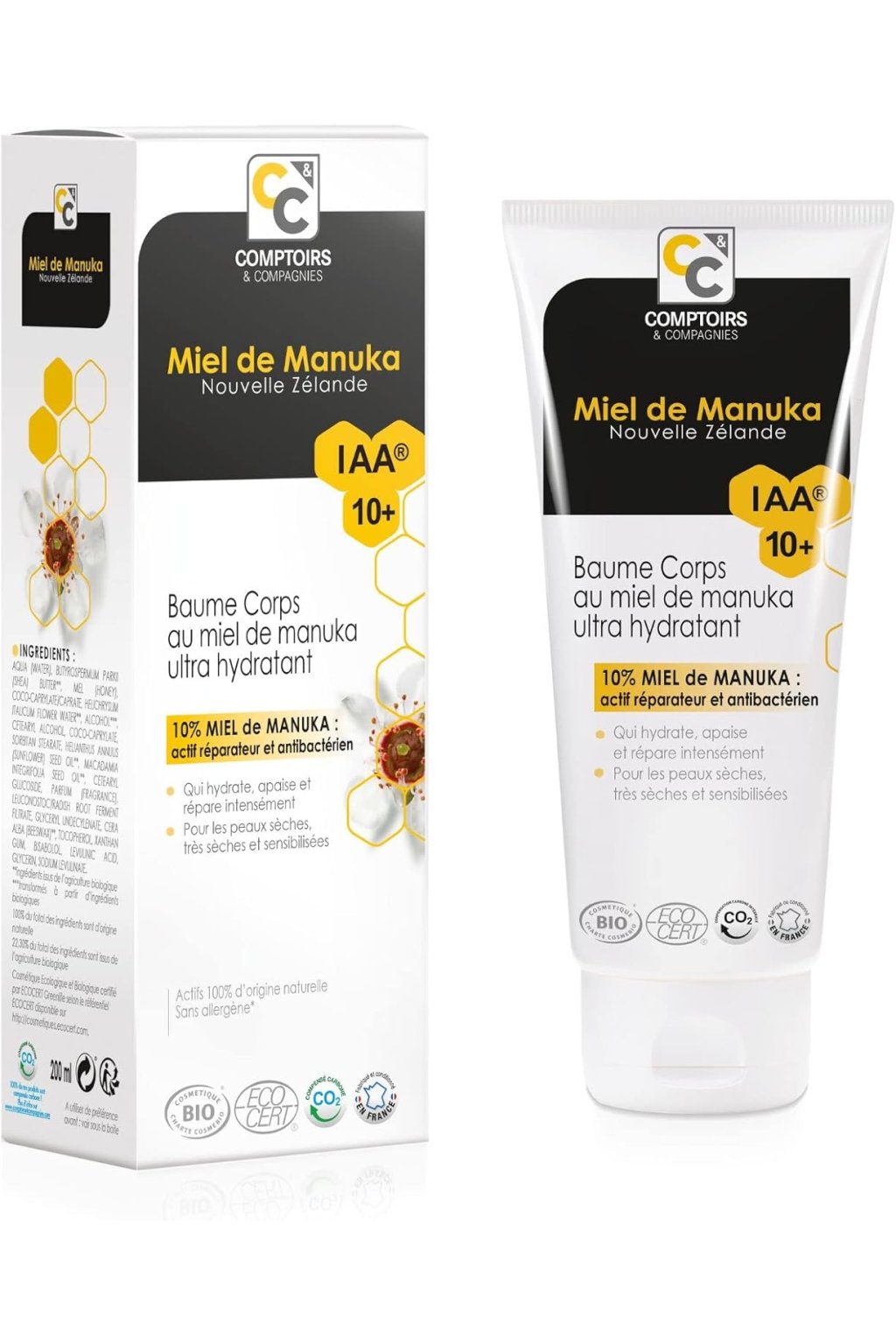 Regenerační krém Comptoirs et Compagnies s 40 % obsahem medu manuka certifikovaného podle normy IAA 10+ obnovuje poškozenou a dehydratovanou pokožku a zklidňuje povrchové podráždění. Med manuka je známý pro své regenerační a antibakteriální vlastnosti. Všechny aktivní složky tohoto krému jsou přírodního původu a neobsahují alergeny ani parabeny.