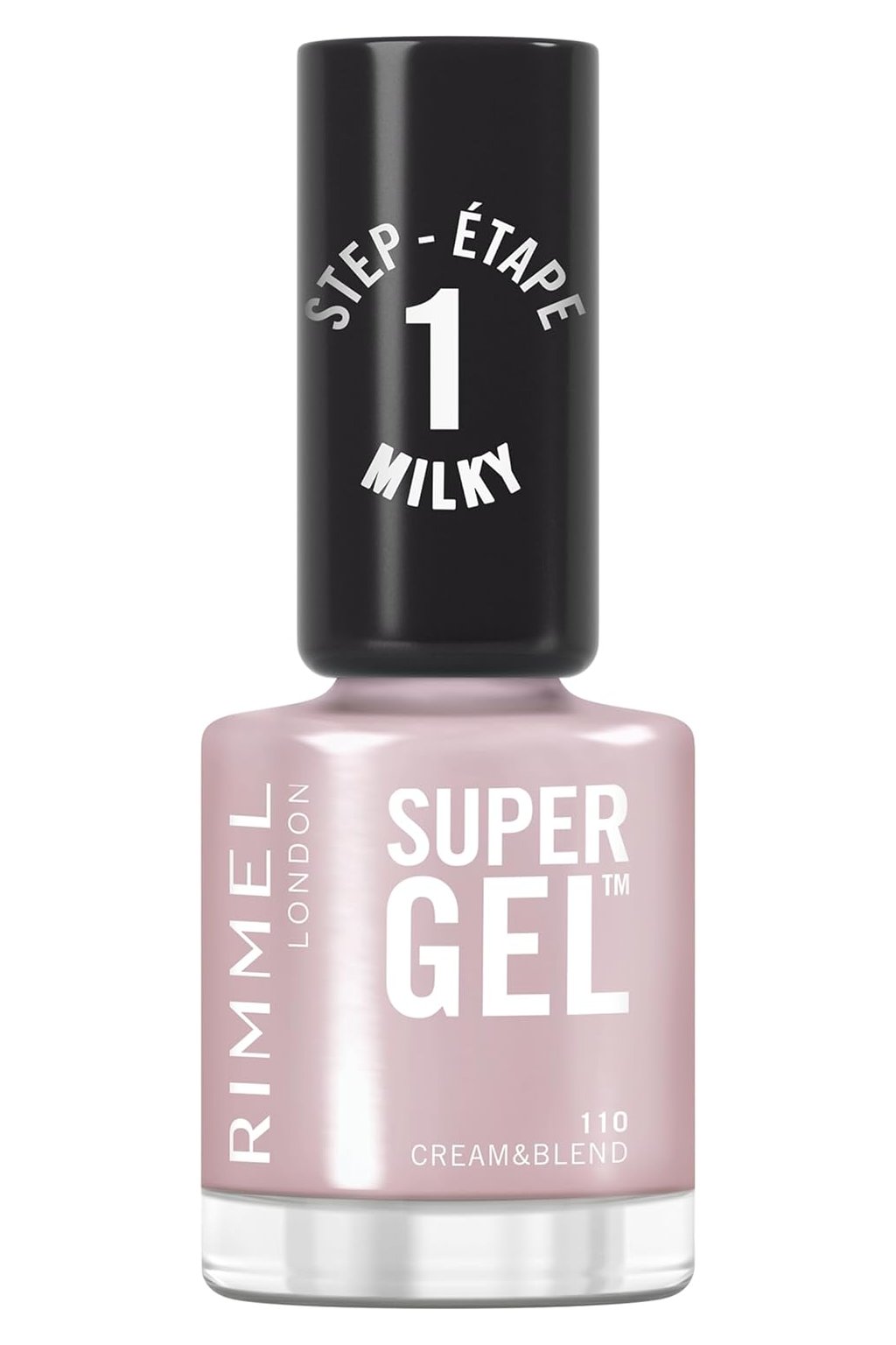 Rimmel Super Gel, 110 Cream & Blend, dlouhotrvající lak na nehty, mléčný finiš, snadná aplikace, gelová manikúra, odolný proti odlupování, čisté složení, 12 ml.