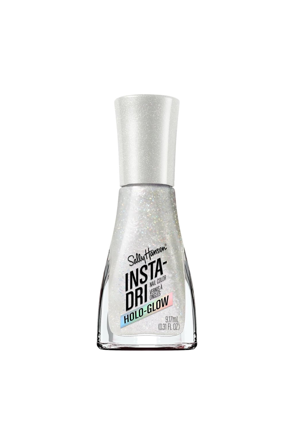 Sally Hansen, Insta-Dri, lak na nehty, odstín 101 Shine Bright, 9,17 ml-Holografický světle šedý lak na nehty