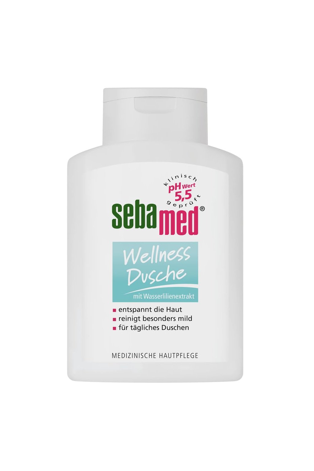 Jemný sprchový gel Sebamed Wellness Dusche byl vyvinut speciálně pro šetrné každodenní mytí citlivé pokožky. Díky fyziologickému pH 5,5 podporuje přirozenou ochrannou bariéru kůže a pomáhá udržovat její zdravou rovnováhu.