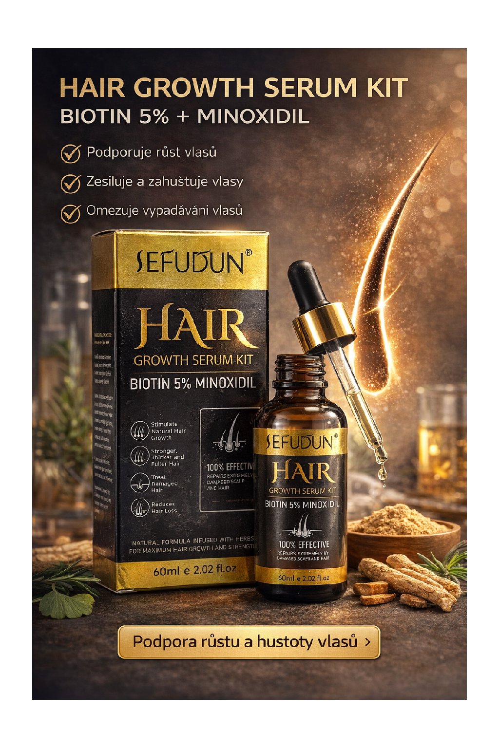 SEFUJUN Hair – sérum pro podporu růstu vlasů s biotinem a minoxidilem (60 ml)