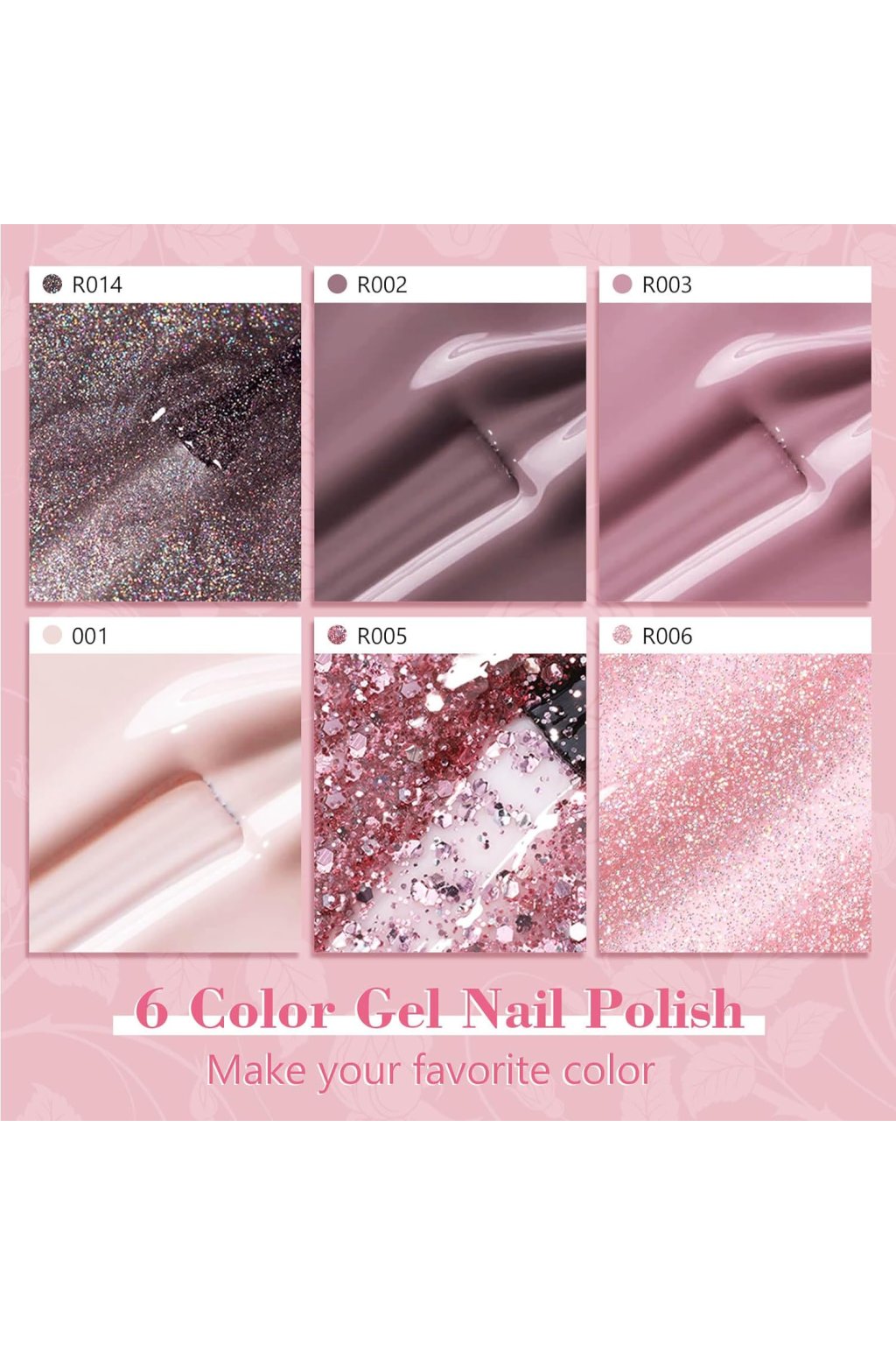 Shining She UV lak na nehty, 6 barev 6x8ml, obsahuje 6 krásných barev na nehty v jedné kombinaci, 8 ml.