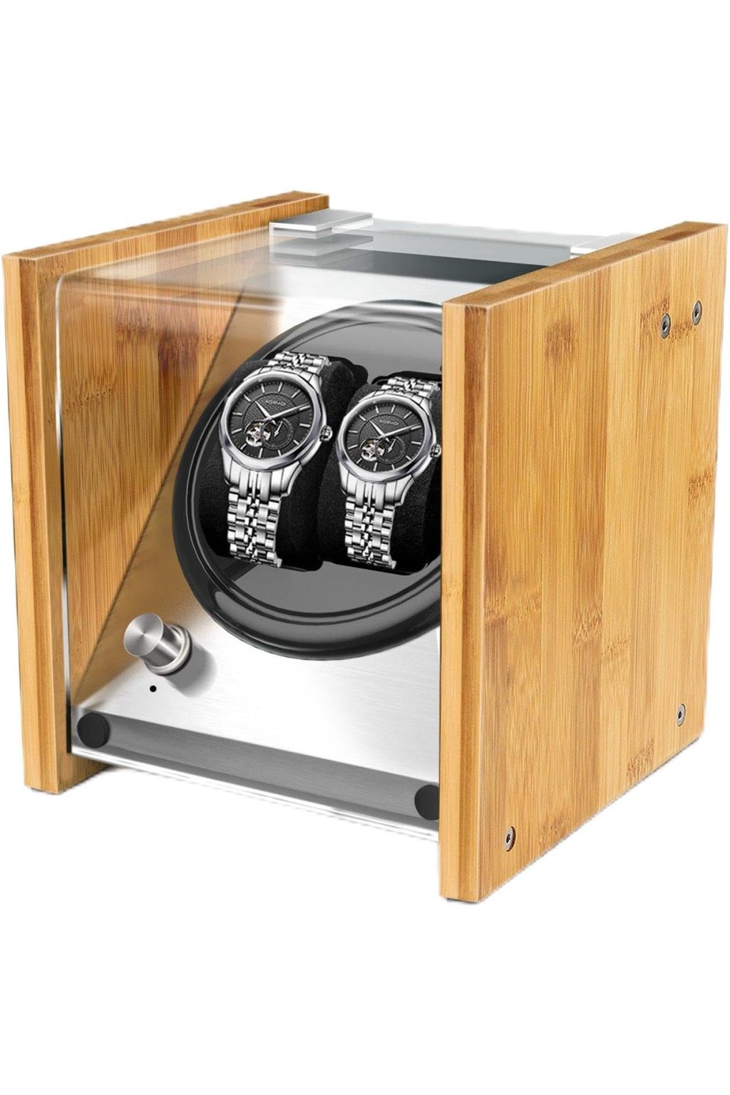 Natahovač hodinek Smith Dvojitý natahovač hodinek pro automatické hodinky - Bambusový natahovač hodinek 2 s tichým motorem 4 nastavení režimu otáčení.