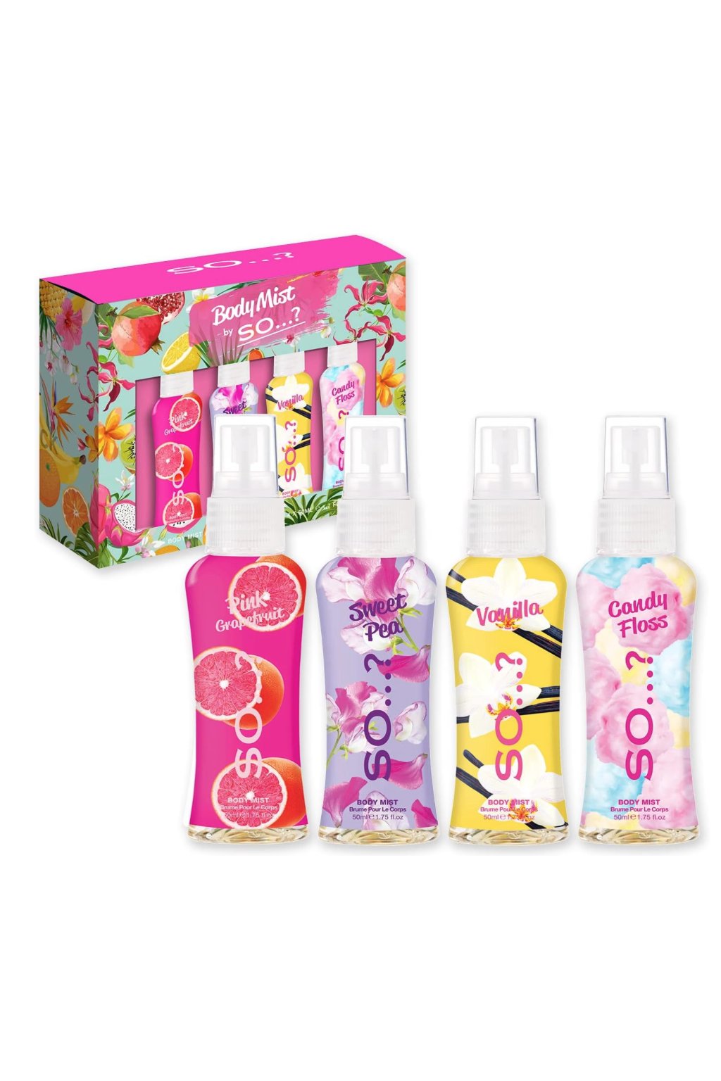 Dárková sada SO…? Mini Body Mist přináší čtyři radostné vůně, které dokážou okamžitě zlepšit náladu a osvěžit každý den.