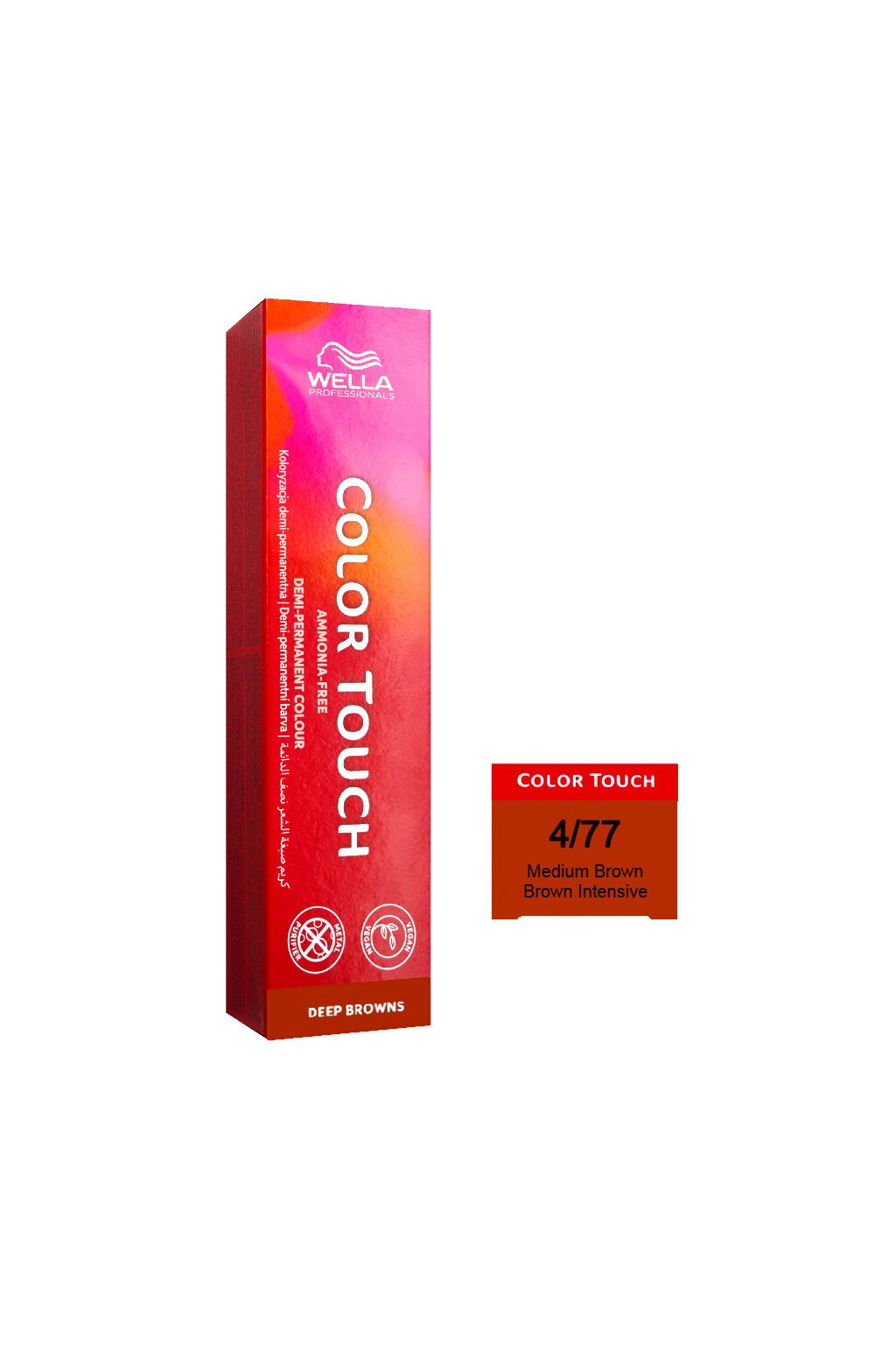 Wella Professionals, Color Touch barva na vlasy, odstín Deep Browns - 4/77 Středně hnědá-hnědá intenzivní.