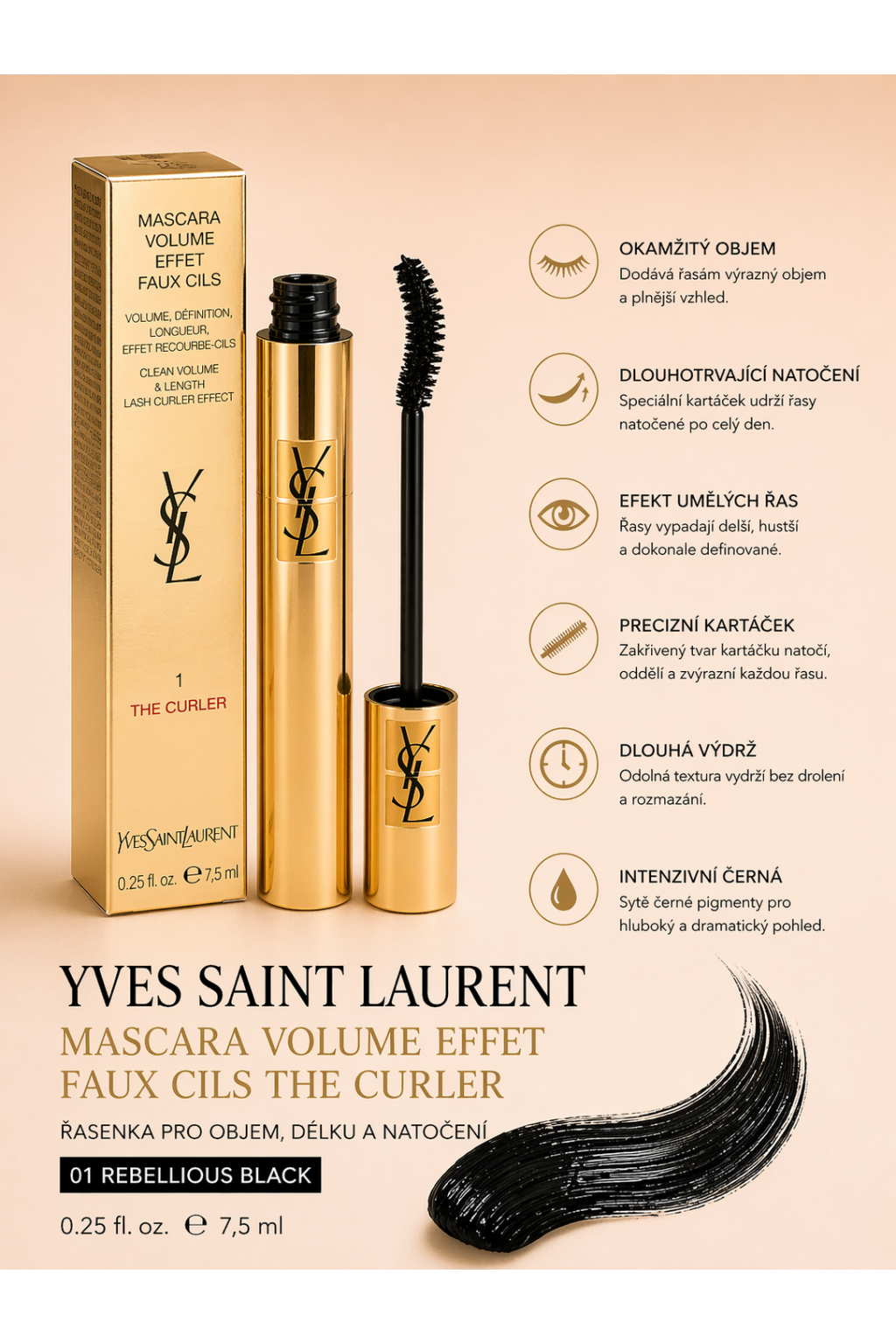 Yves Saint Laurent Mascara Volume Effet Faux Cils The Curler – řasenka (01 Rebellious Black) 7ml