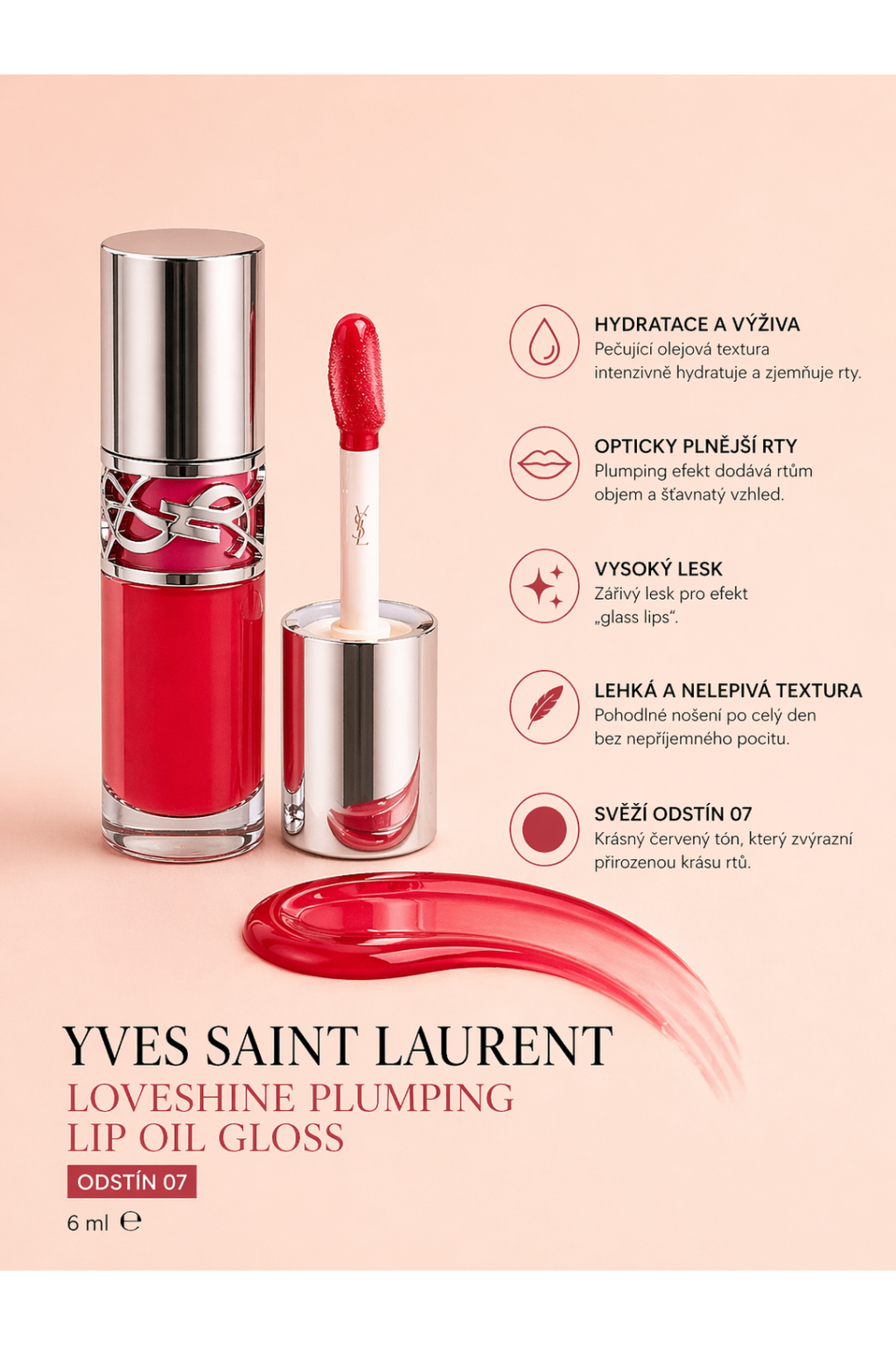 Luxusní lesk na rty YSL Loveshine Plumping Lip Oil Gloss dodá rtům oslnivý lesk, hydrataci a opticky je zvětší.