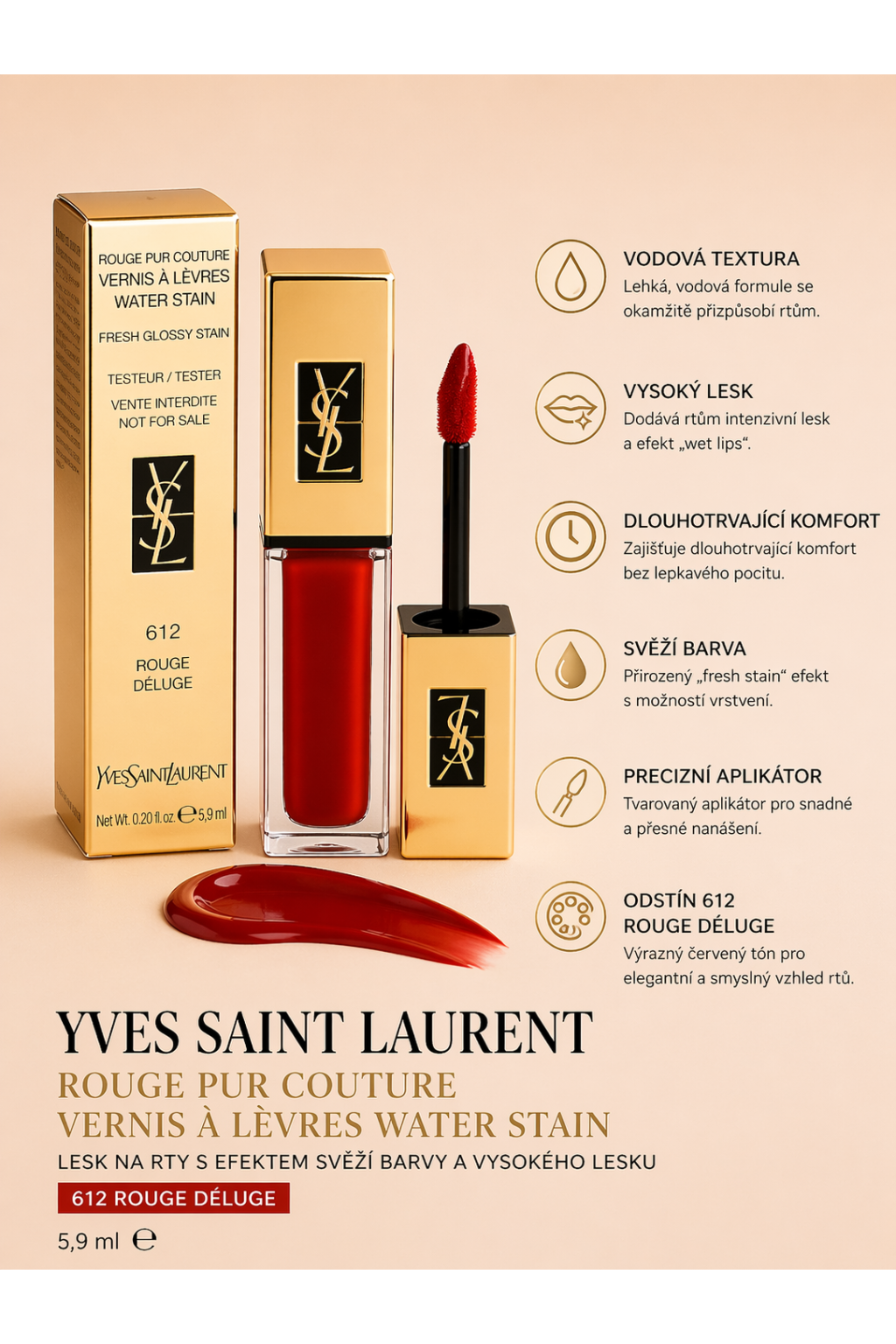 Yves Saint Laurent Rouge Pur Couture Vernis À Lèvres Water Stain – lesk na rty (612 Rouge Déluge)