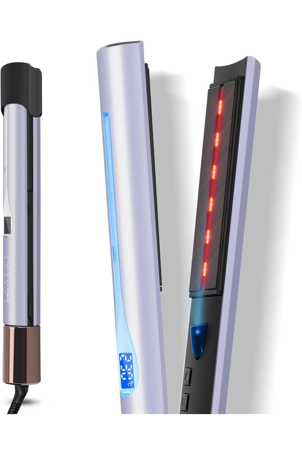 - Profesionální design: Keramický povlak zachycující vlhkost pro hladký, jemný a lesklý výsledek. Krásné LED světla. 360° otočný kabel pro snadnou úpravu vlasů. Zaoblený a pružný tvar pro temperování a natáčení vlasů.