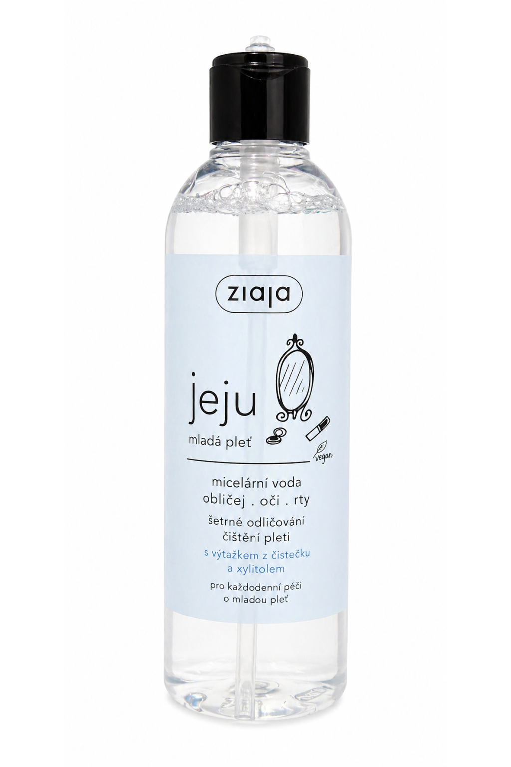 Jemná micelární voda z řady Ziaja Jeju je speciálně vyvinutá pro potřeby mladé pleti. Účinně odstraňuje make-up i nečistoty, zároveň pleť osvěžuje a pomáhá udržovat její přirozenou rovnováhu. Díky obsahu xylitolu a výtažku z čistečku podporuje hydrataci a zklidnění pokožky.